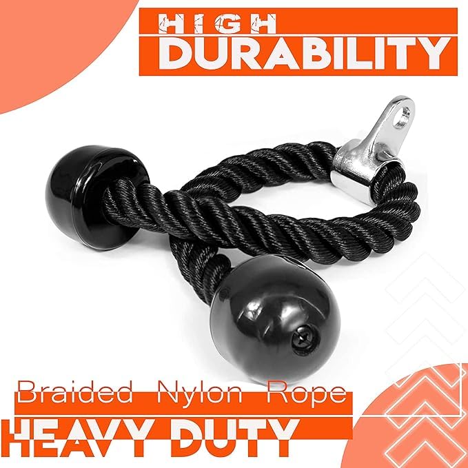 - طرف ثلاثي مضفر متين من سبريدشيرت، حبل مضفر من النايلون الأسود المتين، رؤوس ثلاثية وقوة قبضة مثالية، يساعد السحب لأسفل العضلات حول المرفقين والمعصمين والظهر وعضلات البطن والكتفين