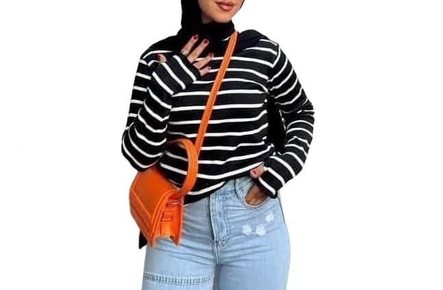 Generic - بلوفر بيزك بصباع توب بيزك مقلم سويت شيرت متعدد الاستايلات من احدث اطلالات عالم الموضه والجمال واحدث صيحات FOUR H كود 620 (ابيض فى اسود, S)