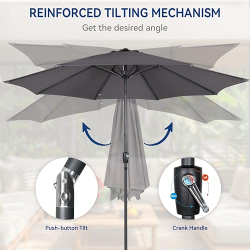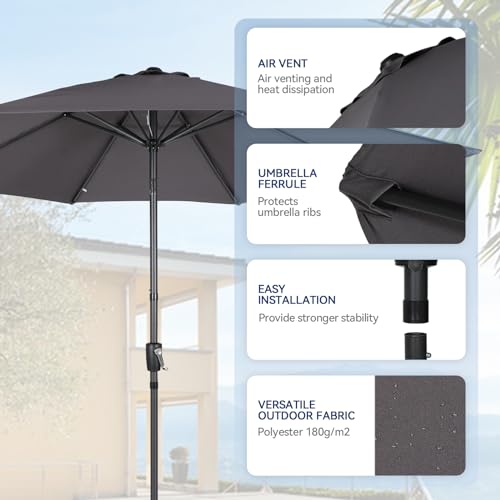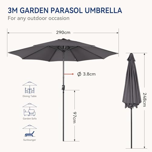 Puluomis - مظلة حديقة 3 متر للفناء الخارجي مع مقبض ذراع قابل للامالة للاستخدام التجاري والسكني والشاطئ
