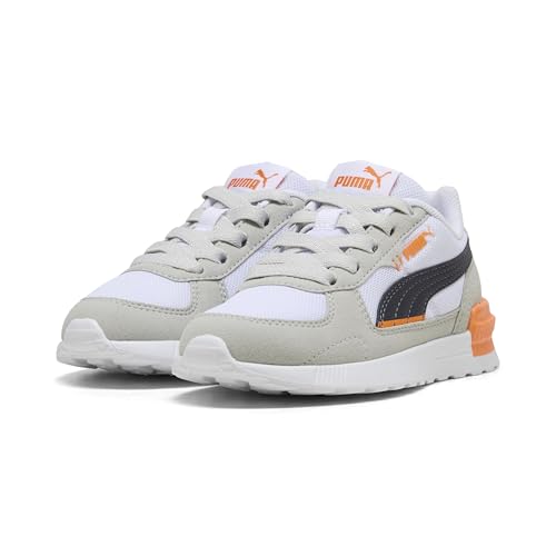 PUMA - بوما بوت برقبة منخفضة للجنسين من جرافيتون، مناسب لمرحلة ما قبل المدرسة، لون ابيض وكحلي، مقاس 30