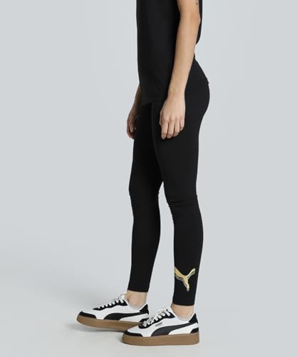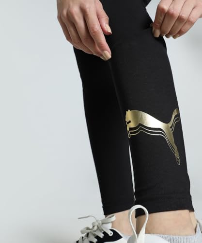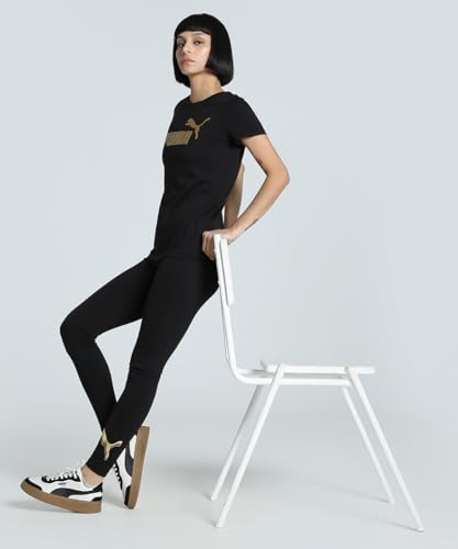 PUMA - بنطلون ليجينجز ضيق اسنشيالز للتدريب للنساء بتصميم شعار ميتاليك من بوما - عبوة من قطعة واحدة