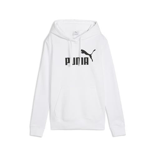 PUMA - بلوفر اسينشيال رياضي (1) بغطاء رأس للنساء مزين بشعار من بوما، أبيض
