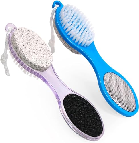 Generic - فرشاة وحجر الخفاف لباديكير القدمين - أداة باديكير وتنظيف القدم 4 في 1، مجموعة العناية بالقدم، (متعددة الألوان) قطعتين