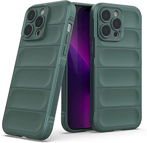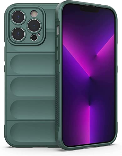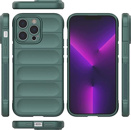 Generic - جراب حماية ممتص للصدمات من سيليكون ببطانة مايكروفايبر مع حماية للكاميرا لموبايل ابل ايفون 13 برو ماكس 6.7 بوصة (اخضر داكن)