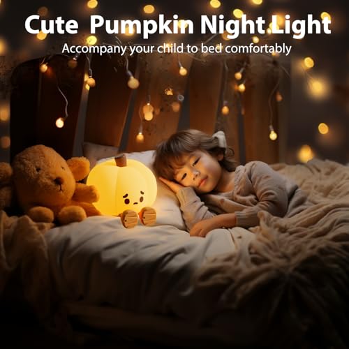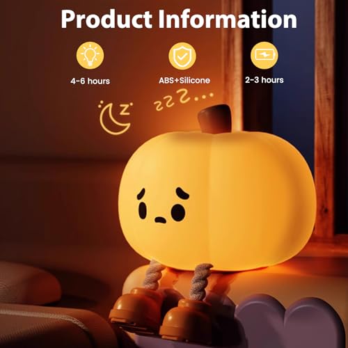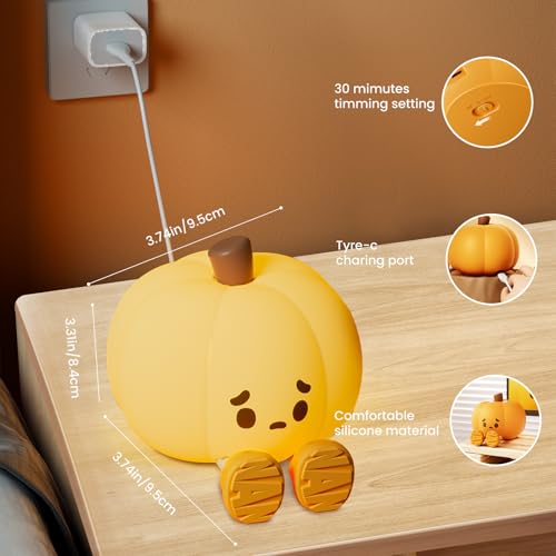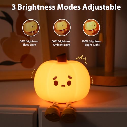Wastou - أباجورة بإضاءة ليلية من السيليكون بتصميم يقطين: 3 مستويات سطوع قابلة للتعتيم، مصباح إسفنجي ناعم قابل لإعادة الشحن، ديكور حضانة مثالي للرضاعة الطبيعية، والأطفال الصغيرة والبيبي، وغرف الأطفال، ديكور
