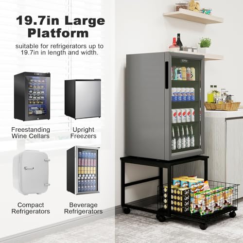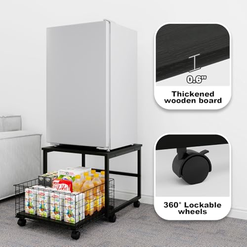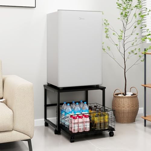 - 【قدرة تحمل قوية】حامل الثلاجة مصنوع من مزيج من الحديد والخشب، ويتميز بقدرة تحمل قوية ومتانة عالية. يُمكن للطبقة العلوية أن تتحمل بسهولة وزن 40.8 كجم. هذا المنتج يحمل أشياء ثقيلة ويمكن تحريكه لوضعه داخل الحائط أو في زاوية.