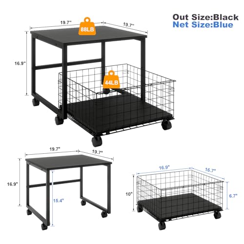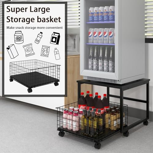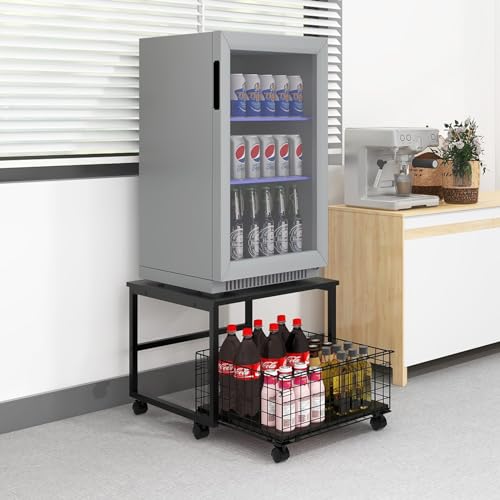 PUNCIA - حامل ثلاجة صغير متنقل بسعة تخزين كبيرة، طاولة ثلاجة محمولة مع 4 عجلات قابلة للقفل، طاولة مع سلة درج وعربة ثلاجة دوارة للمنزل من بونسيا