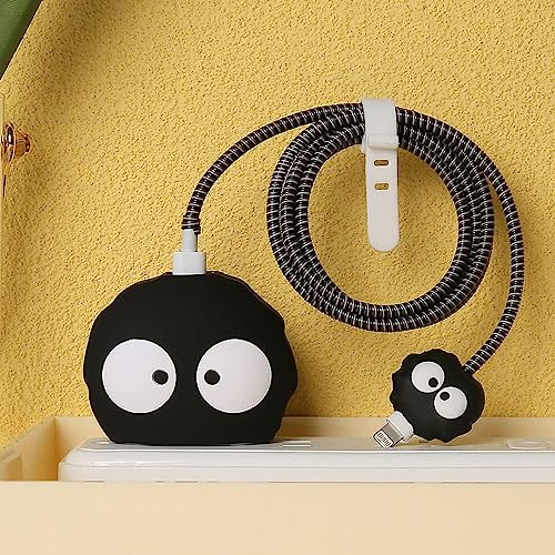 PunnkFunnk - غطاء حماية بتصميم كرتوني لطيف للشاحن موبايلات آيفون 18 وات وشاحن النوع C بقدرة 20 وات من بانك فانك، غطاء حماية لكابل الشاحن بتصميم مرح ثلاثي الأبعاد فريد من نوعه (تصميم عيون كبيرة لطيفة) - أسود