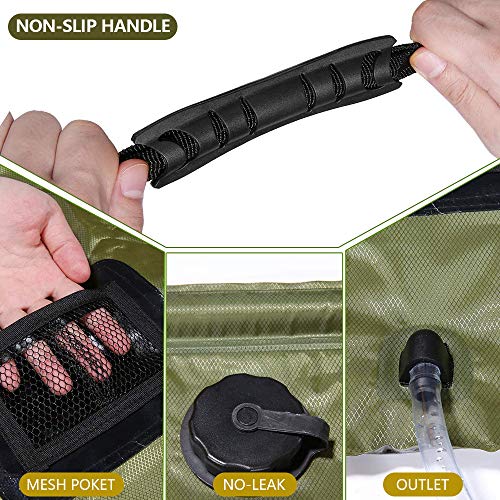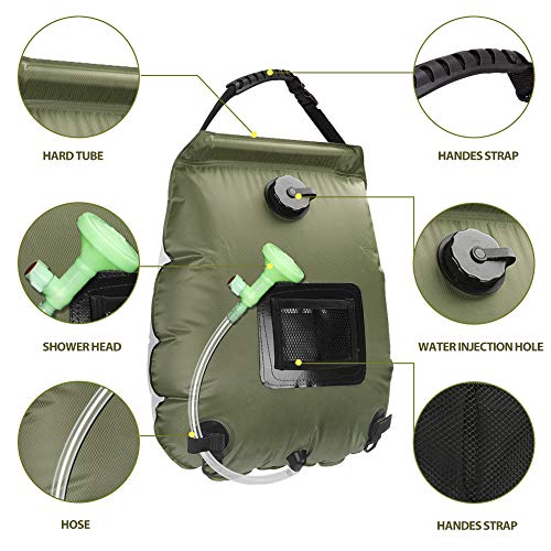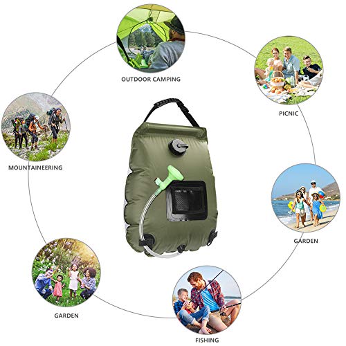 - 【تأتي مع ملحقات مفيدة】حقيبة الاستحمام متعددة الأغراض هذه مجهزة برأس دش متطور، دش يعمل بالطاقة الشمسية سعة 20 لتر يحتوي على خرطوم قابل للإزالة يوفر مفتاح تشغيل/إيقاف سهل. يحتوي الدش على مقبض حمل لطيف للحمل أو التعليق. خرطوم مع رأس دش صمام، صغير وصغير الحجم.