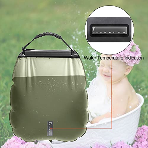 - ☞【إكسسوارات غنية عملية】حقيبة الاستحمام الخاصة بنا مقاومة للتآكل وخفيفة الوزن وقابلة لإعادة الاستخدام. يوفر رأس الدش المتطور هذا مفتاح تشغيل/إيقاف سهل مع تدفق مياه منخفض إلى عالٍ، وخرطوم دش ورأس دش لسهولة الفك والتجميع. يوجد مؤشر لدرجة الحرارة (درجة مئوية/فهرنهايت) متصل بالحقيبة. يمكن الوصول إلى أفضل درجة حرارة للاستحمام تصل إلى 45 درجة مئوية بعد حوالي 3 ساعات من أشعة الشمس المباشرة.