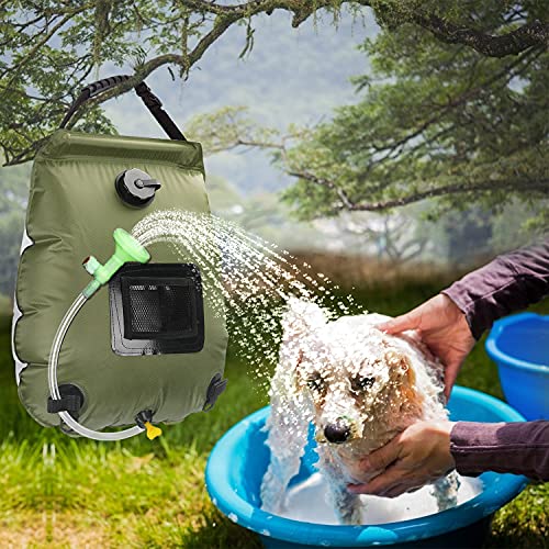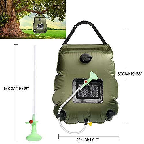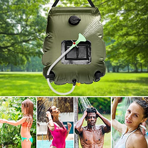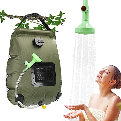 Punvot - شنطة استحمام تعمل بالطاقة الشمسية بسعة 20 لتر للتخييم والسفر والماء الساخن مع رأس قابل للتعديل للمشي لمسافات طويلة والتسلق والدش الشمسي في الهواء الطلق، بلاستيك، أخضر