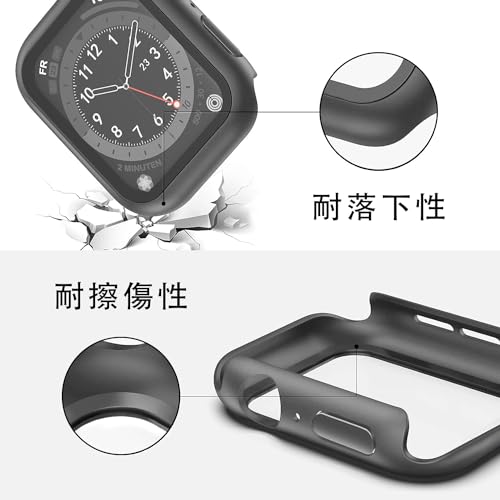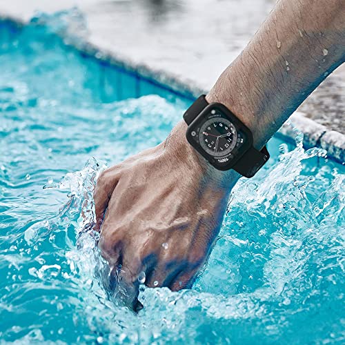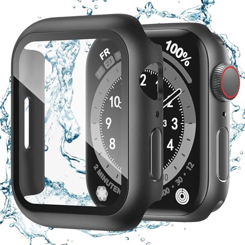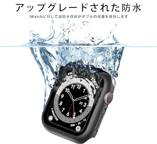 Puptoya - غطاء حماية مقاوم للماء لساعة آبل 45 ملم من بوبتويا لساعة آبل فئة 9 8 7 امبورو، واقي ممتص للصدمات وحساسية اللمس، غطاء زجاج سهل التركيب لساعة اي ووتش 45 ملم، لون أسود