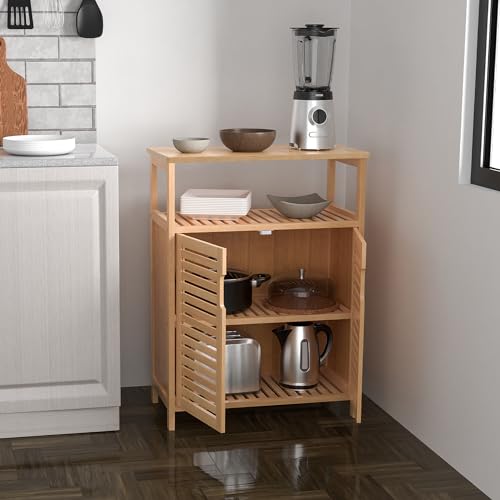Purbambo - دولاب تخزين للحمام من البامبو مع بابين، منظم خزائن قائم بذاته لأرضية الحمام وغرفة المعيشة والمطبخ والمدخل من بوربامبو