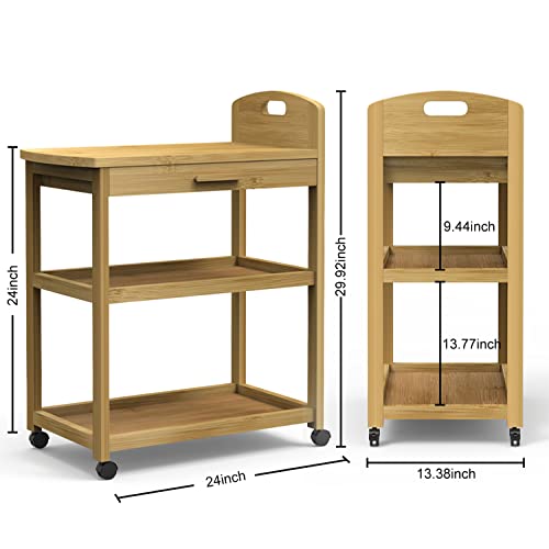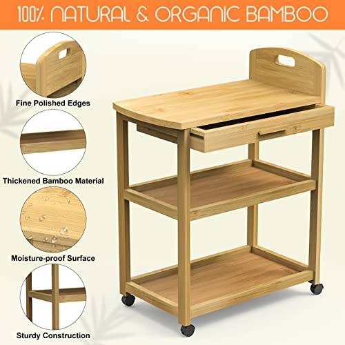 Purbambo - عربة مطبخ من الخيزران مع درج وعجلات قابلة للقفل، عربة تقديم دوارة من 3 طبقات مع أرفف للمنزل والمطبخ والحمام من بوربامبو
