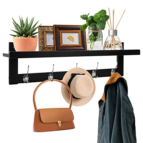 Purbambo - رف معطف جداري من الخيزران: يتميز برف علوي وخطافات خشبية، بطول 73.4 سم، للمدخل، الحمام، المطبخ، وغيرها لتنظيم المساحة من بوربامبو، بني غامق