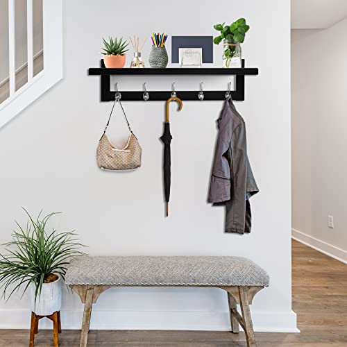 - 5 خطافات مزدوجة الرأس - الخطافات مصنوعة من الصلب عالي الجودة بلمسة نهائية ناعمة، لذلك لن تخدش معاطفك أو طواقي أو شنطك. تصميم مزدوج الرأس يضاعف قدرته على التعليق. المسافة بين الخطافات تبلغ 12.7 سم، وهي أوسع من معظم رفوف المعاطف الشائعة، مما يتيح لك تعليق الأشياء الكبيرة بسهولة.