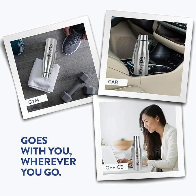 Generic - احصل على زجاجة سبورت عصرية من الاستانلس الصحي بيور سعة 500 مل، منتج أصلي مستورد، تحافظ على المشروبات ساخنة 12 ساعة وباردة 20 ساعة وأكثر، مثالية للرياضة والدراسة. (فضي 2 قطعه)