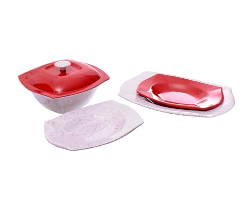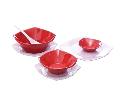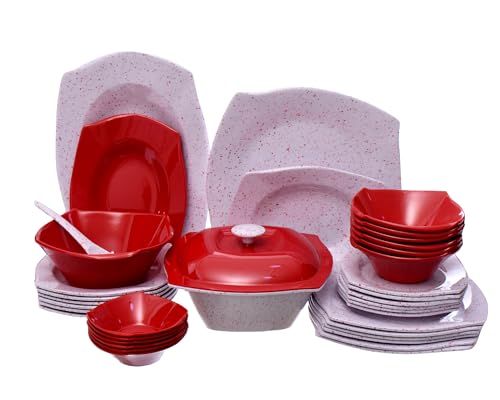 PURE - طقم عشاء ميلامين مربع الشكل مختلط بنمط جرانيت، 38 قطعة، من ماركة بيور، أحمر