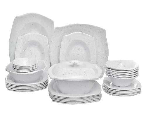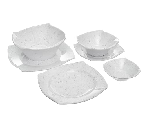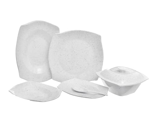 PURE - طقم عشاء ميلامين مربع الشكل بنمط جرانيت مكون من 38 قطعة من بيور، لون بني