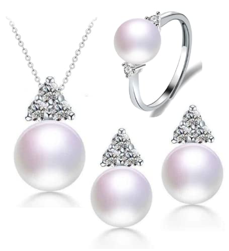 Generic - طقم مجوهرات من اللؤلؤ الطبيعي النقي والفضة - مطعم بالكريستال NP870004 ماذر_اوف بيرل - متعدد الألوان ، للبالغين من الجنسين