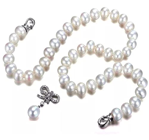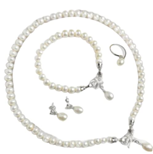 Generic - طقم كامل من اللؤلؤ الطبيعي النقي و الفضة المختومة 925 مطعم بالكريستال