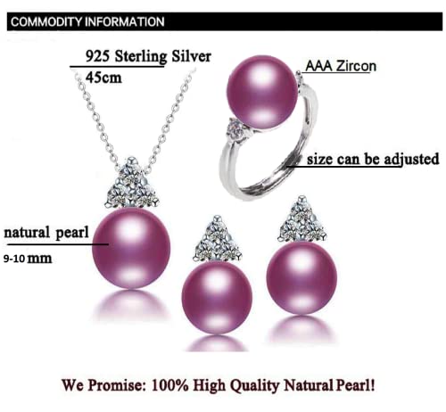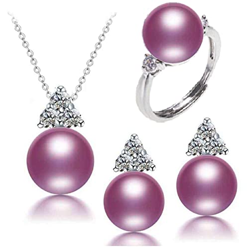 Generic - طقم مجوهرات من الفضة و اللؤلؤ الطبيعي النقي - مطعم بالكريستال(أرجواني) NP870006