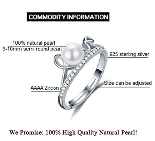 Other - خاتم من اللؤلؤ الطبيعي النقي والفضة المختومة 925 مطعم بالكريستال، قابل للتعديل، للأنثى