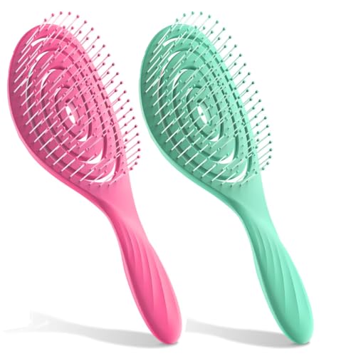 Purfex - فرشاة فك تشابك الشعر صديقة للبيئة بشعيرات ناعمة للشعر المجعد والمفرود والأسود الطبيعي للنساء والرجال والأطفال المبلل والجاف من بورفيكس، 2 قطعة