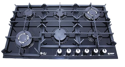 Purity101 - بوتاجاز غاز مسطح مدمج من بيورتي 101، 6 عيون وحوامل متينة، HPT904G