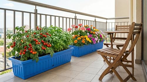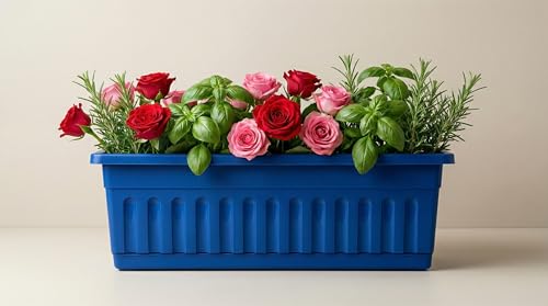 - تصميم عملي: حوض زراعة مستطيل مصنوع من البلاستيك المتين مع تصميم أنيق يناسب الشرفات والمساحات الخارجية