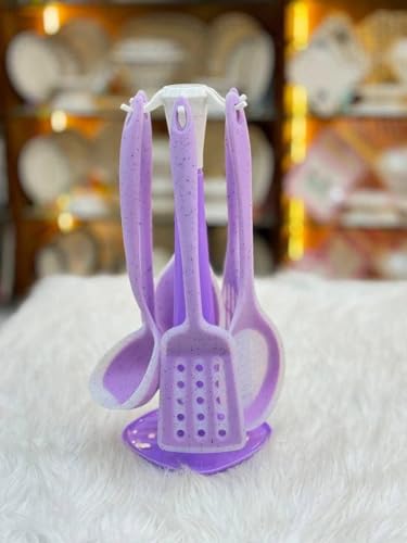 Generic - طقم أدوات مطبخ بنفسجي مع حامل، 7 قطع