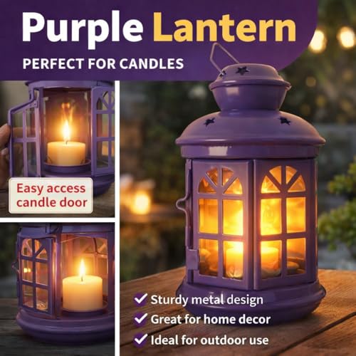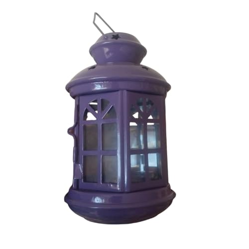 Generic - فانوس معدني للشموع باللون البنفسجي مع تصميم نوافذ، مثالي للاستخدام الداخلي والخارجي، ديكور منزلي لرمضان