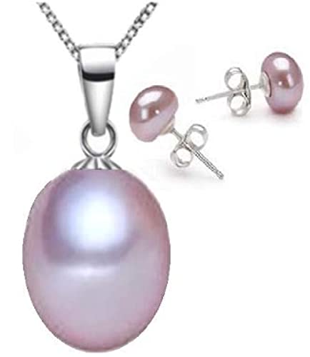 Other - طقم من الفضة اللؤلؤ الطبيعي مكون عقد وحلق أرجواني اللون فضة مطلي للبالغين الجنسين