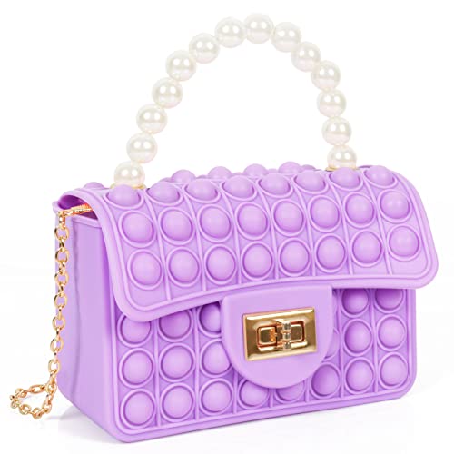 Yiran - شنطة بوب لعبة فدجيت، شنطة ألعاب صغيرة بتصميم 2 في 1، مصنوعة من السيليكون لتخفيف التوتر، شنطة يد وكتف كروس للبنات، أرجواني