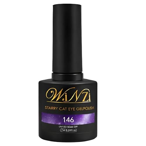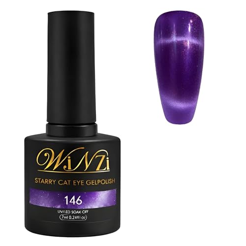 WINZI - Purple Starry Cat Eye Gel Nail Polish – 7ML Magnetic Galaxy Shimmer Effect UV/LED Soak Off Gel, Long Lasting High Shine Manicure Color for Nail Art Designs (146)