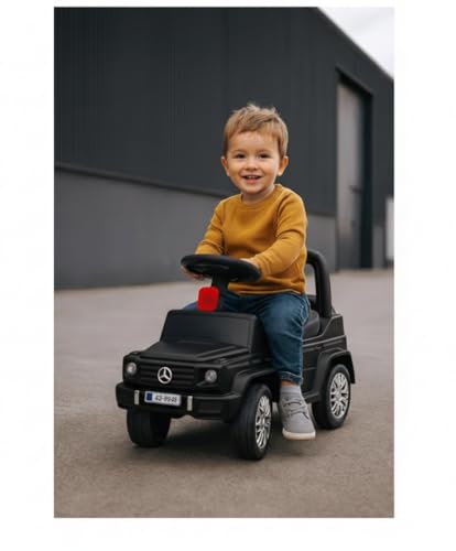 - تصميم مرسيدس: سيارة أطفال فاخرة بشعار مرسيدس بنز مع تصميم أنيق من الفئة G باللون الأزرق