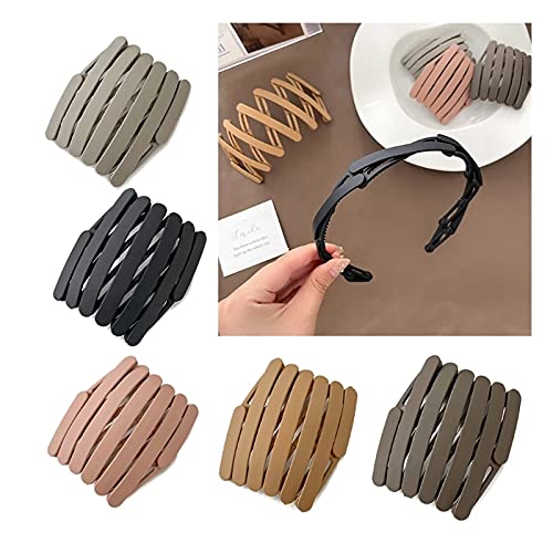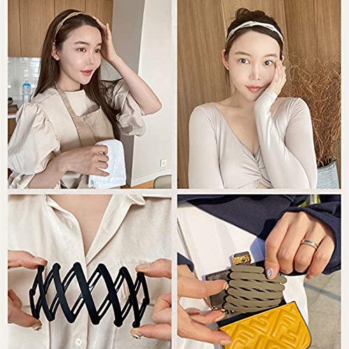 PUTOWUT - مجموعة طوق رأس عصرية صغيرة قابلة للطي من بوتوت بتصميم ريترو قابل للسحب، طوق شعر رياضي مضاد للانزلاق محمول وقابل للتعديل لوضع المكياج والسفر- 5 قطع