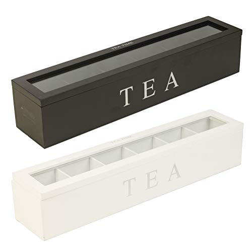 PUZOU - صندوق تخزين شاي خشبي، منظم اكياس الشاي والقهوة والسكر مع 6 اقسام صندوق تخزين منزلي