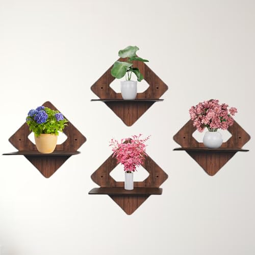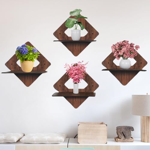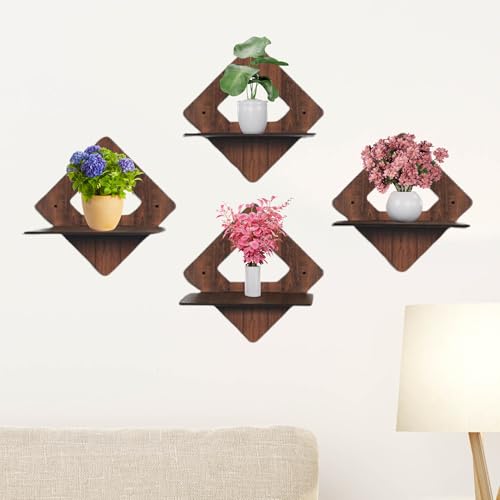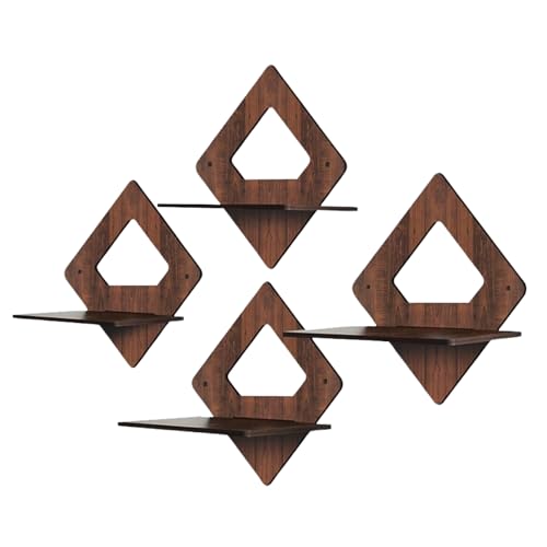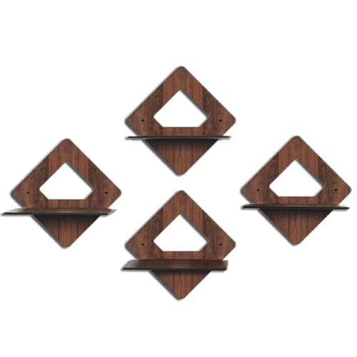Puzzle Berry - ارفف عائمة تثبت على الحائط من بازل بيري لغرفة المعيشة وغرفة النوم والمطبخ وغرفة بوجا وغيرها - بدون ثقب، رف خشبي لاصق، ارفف للزوايا والكتب، مجموعة من 4 قطع، ديكور حائط (رف دايموند)