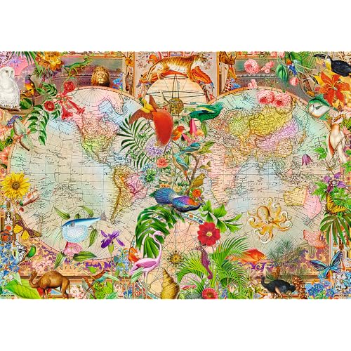 - أحجية عالية الجودة بريميوم بلس: مع 1000 قطعة، تبرز بفضل التناسب المثالي للقطع واستخدام كرتون عالي الجودة. بمجرد تجميعها فإنها تشكل صورة 683 × 480 ملم لخريطة عالم قديمة مزينة بزخارف نباتية وحيوانية.