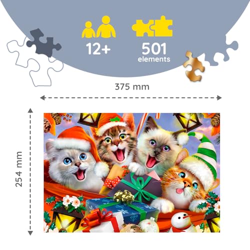 Trefl - بازل خشبي من تريفل- "500+1 قطعة خشبية" - بتصميم قطط في احتفالية، موديل 20172، بالغ