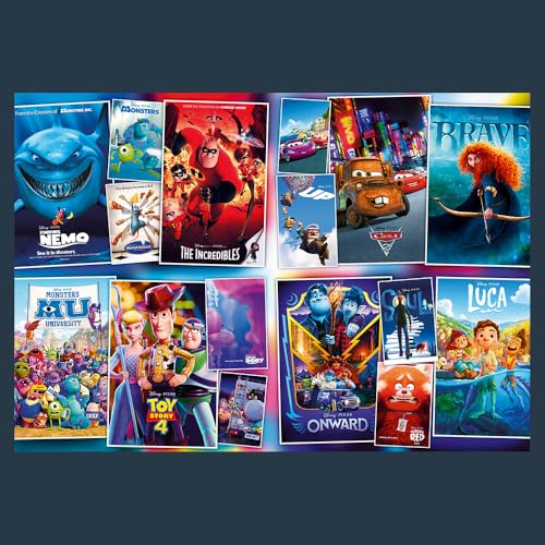 - جمع لعبة الأحجية الكبيرة التي تصور أبطال الرسوم الكاريكاتورية المعروفة من بيكسار. تبلغ أبعاد الصورة النهائية 1.3 م × 92.7 سم، وفي العبوة ستجد تعليمات وملصق كبير 67.6 × 45.2 سم يجعل من السهل تجميعها.