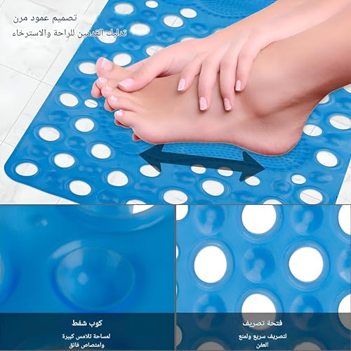 - مزودة بأكواب شفط قوية على جانبها السفلي، توفر هذه السجادة ثباتًا معززًا من خلال تثبيتها بإحكام على سطح حوض الاستحمام أو الدش. توفر أكواب الشفط هذه قبضة قوية، وتمنع السجادة من الانزلاق، حتى في أكثر البيئات زلقة ورطبة، مما يوفر لك مزيدًا من الأمان أثناء الاستحمام أو الاستحمام.