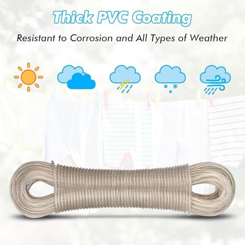 Generic - حبل غسيل بقلب من الستيل المطلي ببلاستيك PVC، قطر الكابل 4 ملم، سلك شديد التحمل، مقاوم للطقس، للاستخدام الخارجي والسفر