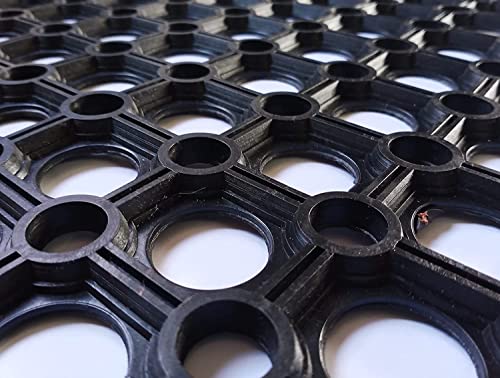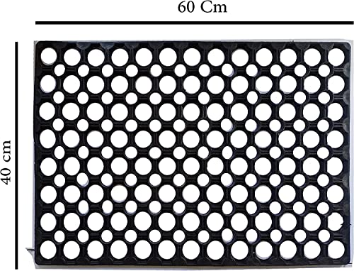 Generic - دواسة باب مستطيلة ذات تفريغات دائرية للمداخل بي في سي (40x60 سم)، بيج داكن / تان