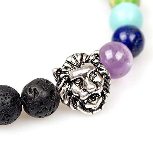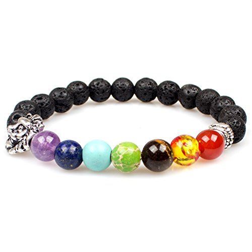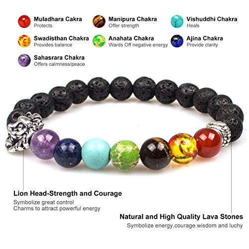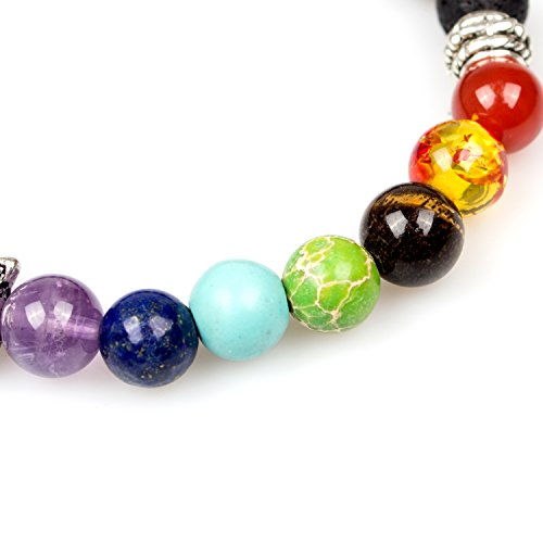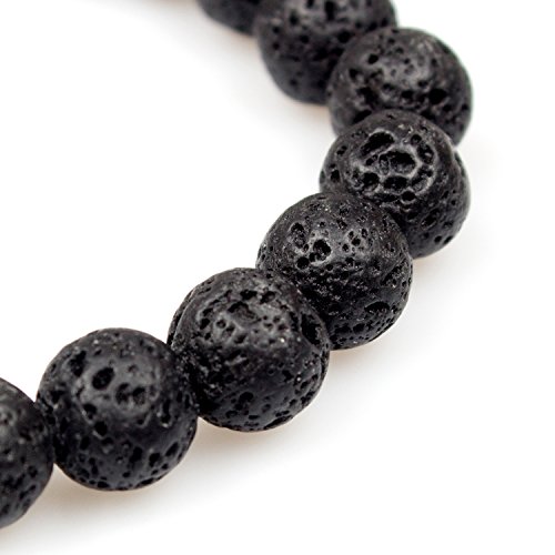 PWMEN - انسيال خزر شاكرا باحجار لافا 8 ملم للرجال والنساء علاجي اسود كريمة 7.08 انش من بومين