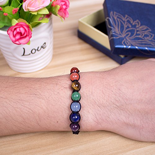 PWMEN - سوار علاج للنساء والرجال من بومن شاكرا خرز الطاقة المصمم بحبل دائري مضفر لعلاج التوازن حجر