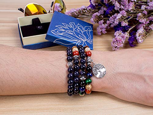 PWMENLK - سبحة بخرز مالا فيروز 108 خرزة ملم من مجوهرات بي دبليو ام اي ان ال كيه، 7 خرزات شاكرا شجرة الحياة تصلح كسوار وسلسلة, حجر، للنساء