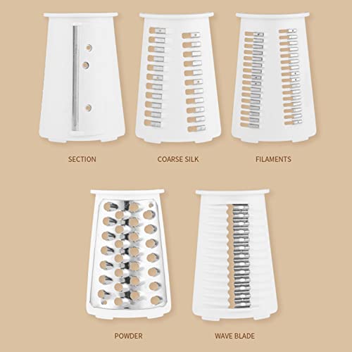 - شفرة من الفولاذ المقاوم للصدأ: تأتي قطاعة الخضروات بخمس شفرات مختلفة من الفولاذ المقاوم للصدأ، والتي يمكنك استخدامها لتقطيع الطعام بأشكال وأحجام مختلفة.