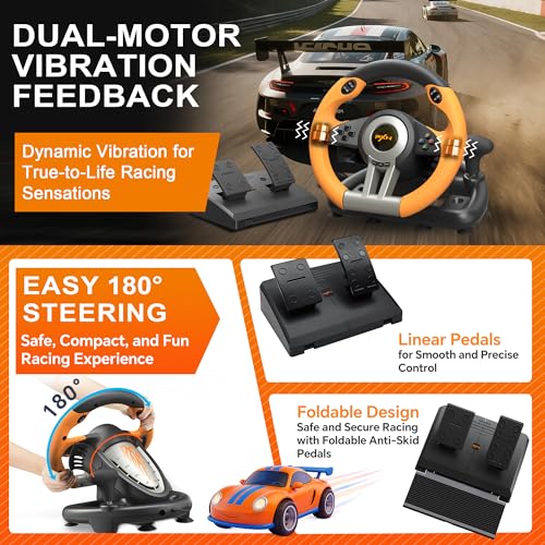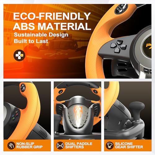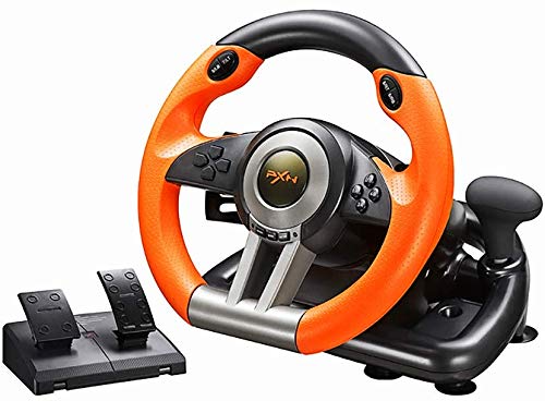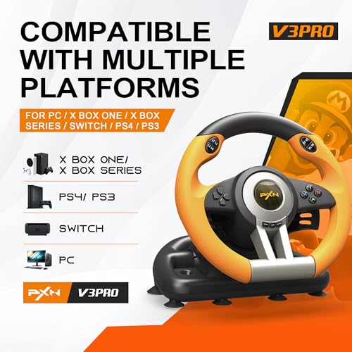 PXN - عجلة قيادة سيارة سباق بي اكس ان V3II عالمية 180 درجة بمنفذ USB مع دواسات لاجهزة بلاي ستيشن 3 وبلاي 4 واكس بوكس ون سلسلة اس ونينتندو سويتش برتقالي